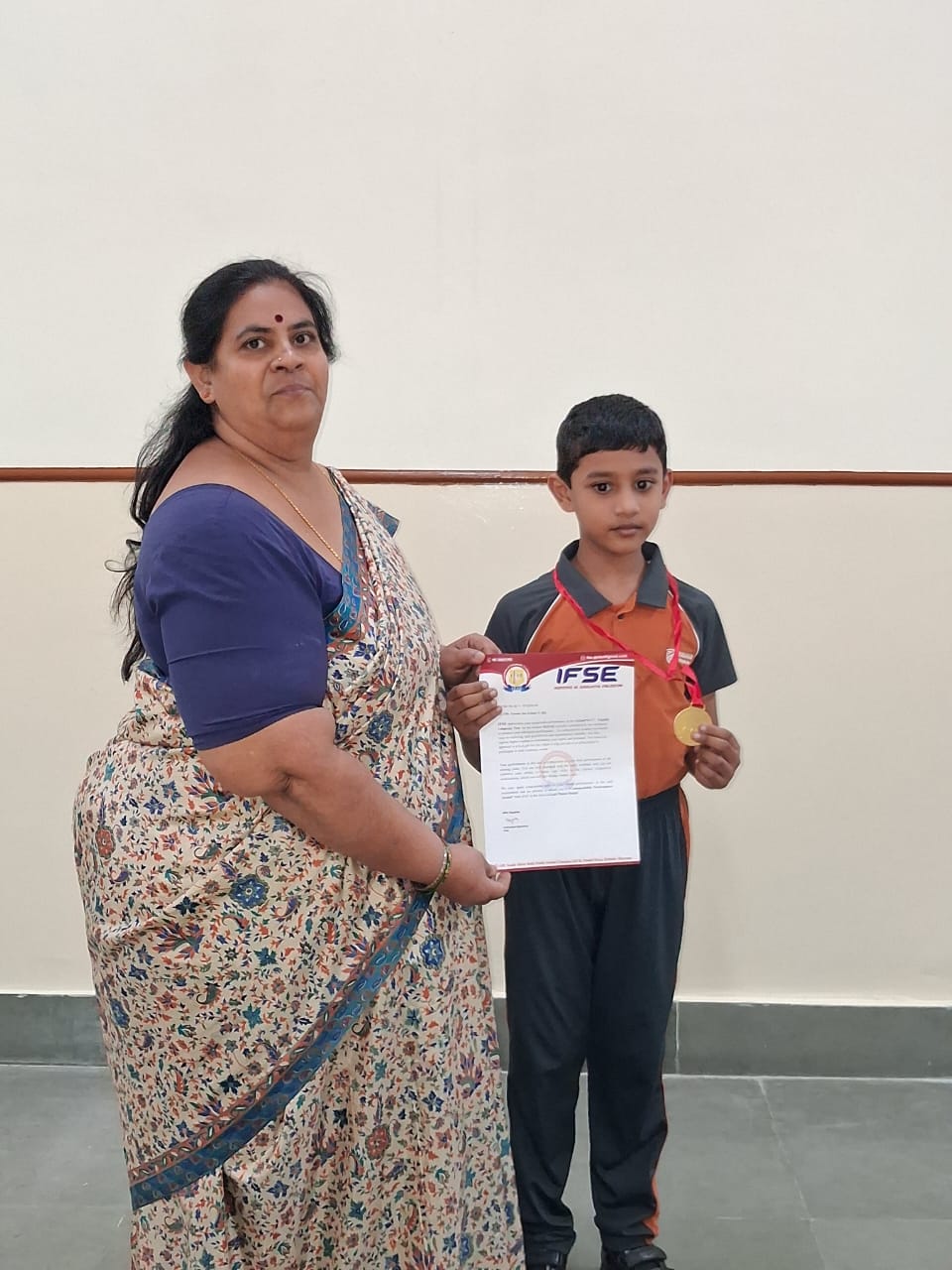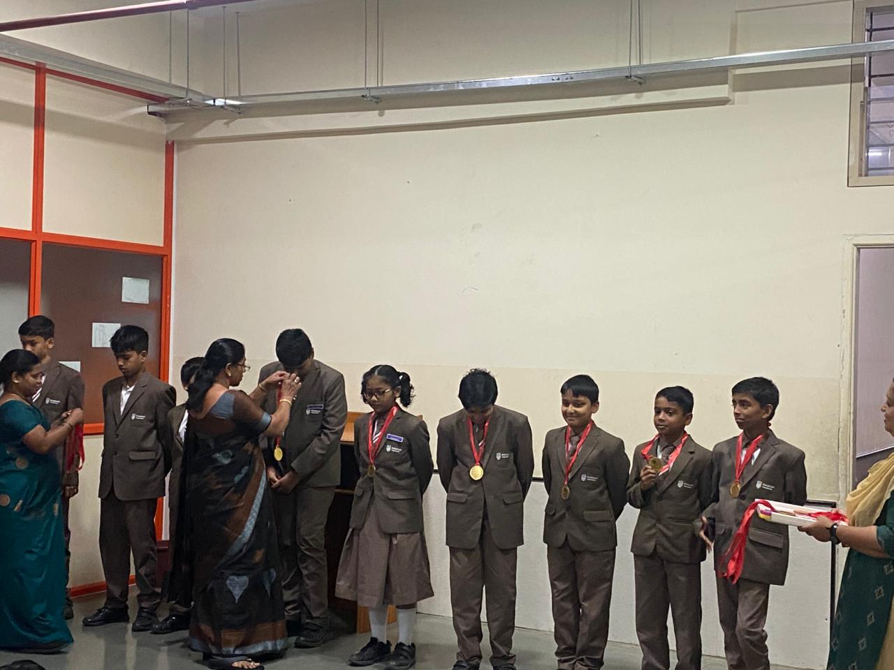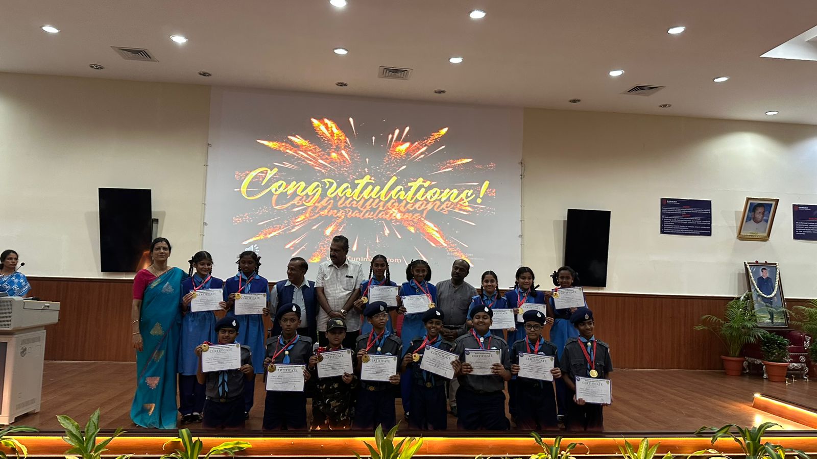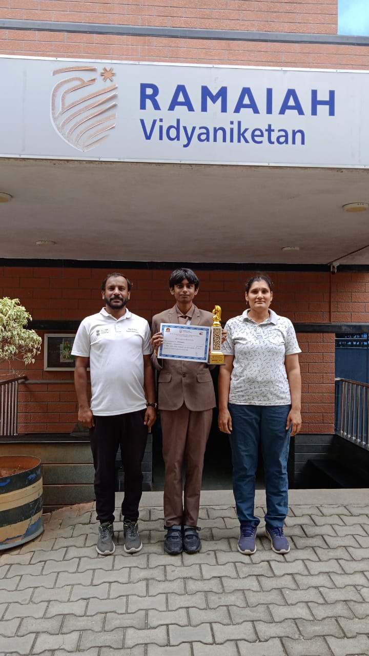 Fifty four students of the school participated at the State Level School Olympics Athletics Championship 2023 at Sports Authority of India grounds, Jnana Bharathi ,Bangalore University.The event was organized by youngsters sports promoters Trust and Youngsters sports Club. Master Prajapathi Harsh Yogesh of the 9th grade bags the 1st place in Under-14 boys shot put event. Aug 15th:Master Prajapathi Harsh honored at MS Ramaiah Independence day celebrations for his achievement at the State Level School Olympics Athletics Championship 2023.