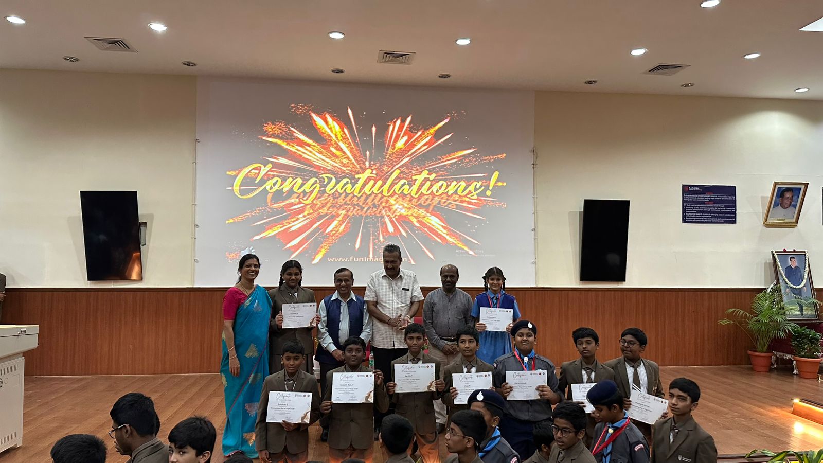 Aug 18th 2023 : Master Adhithyan P. of grade 10 ,Rishab Verma of grade 9 and Miss Sarika of grade 8 were the proud finalists of the Blog Writing competition. The topic was “Smart Cities are getting Smarter”.