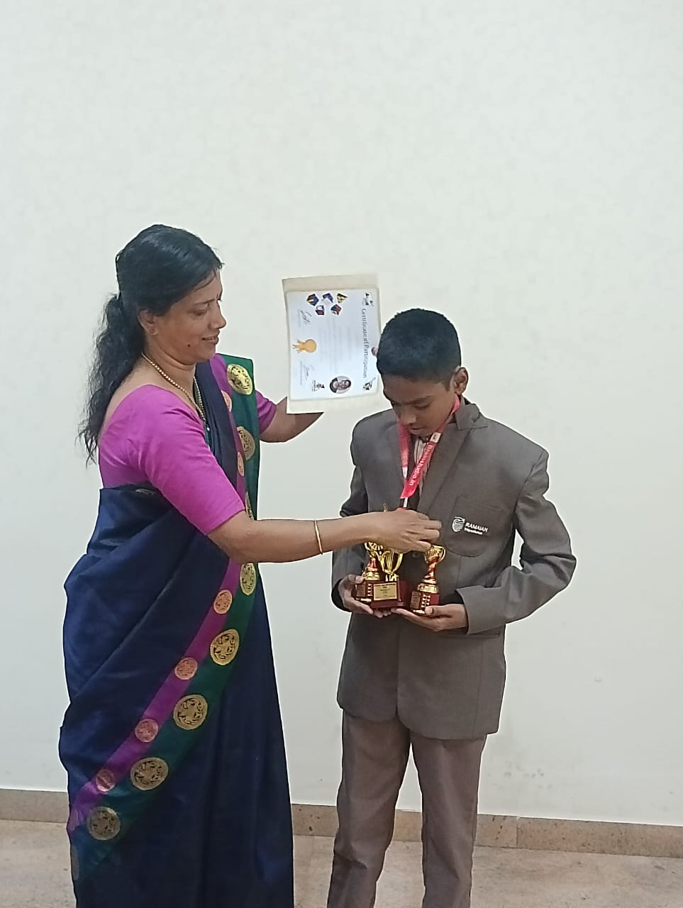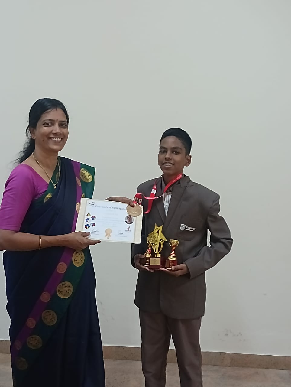 Master Arjun Chetan of standard 10 participated in the inter school competition held by Ramaiah PU college and bagged the first place in the elocution competition. He spoke about the role of statistics in our day to day lives . We extend our warmest congratulations to Arjun and wish him continued success